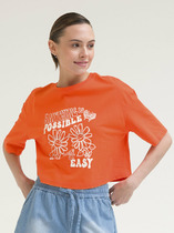 Укороченная футболка оверсайз силуэта для женщин. Модель выполнена из 100% хлопка — ткань дышащая, мягкая и приятная на ощупь. Изделие с классическим округлым вырезом горловины декорировано позитивными принтами по переду и спинке. Принты мягкие и устойчивые к многочисленным стиркам. Свободный силуэт обеспечивает комфорт. Такой топ отлично подходит как для летнего отдыха, так и для занятий спортом. Эта модель прекрасно сочетается с различными шортами, леггинсами, джоггерами.