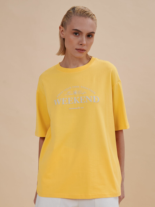 Женская футболка с принтом. Футболка оверсайз со спущенным плечом подарит вам комфорт и свободу движения. Джемпер такого силуэта скрывает недостатки фигуры и подчёркивает достоинства. Майка с удлинёнными широкими рукавами — один из актуальных модных трендов сезона. Она неприхотлива в уходе. Трикотажная футболка украшена трендовым принтом в университетском стиле по переду, надписи переводится: "наслаждайтесь временем, проведённым вместе", "досуг, комфорт", "выходные на объединяют". Принт качественный и стойкий — без проблем переносит многочисленные стирки. В составе ткани преобладает высококачественный хлопок — футболка мягкая, приятная на ощупь и позволяет коже дышать. Эластан помогает изделию надолго сохранить первозданную форму. Джемпер представлен в следующих актуальных цветах: чёрный, голубой, синий, жёлтый, белый, зелёный, бежевый. Размерная линейка: XS (42); S (44); M (46); L (48); XL (50). Модель идеальна и для женщин, и для девушек, и для девочек-подростков. Базовая футболка оверсайз универсальна, отлично подходит для работы, учёбы, спорта, прогулок, отдыха, а также для дома и сна. Хлопковая футболка легко сочетается с различными брюками и шортами. Её можно носить летом, зимой и в демисезон (осенью и весной). Модная футболка— это прекрасный подарок сестре, подруге или маме на любой праздник. Выбирайте нужный размер по таблице размеров на фото. Цвет товара на экране вашего устройства может отличаться от цвета изделия вживую.
