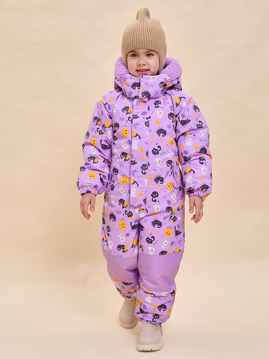 Комбинезон зимний детский из мембранной ткани для девочки. Модель свободного объёма с рукавами кроя реглан - ребёнку комфортно и не стесняет движения. На внешнюю поверхность материала нанесена водоотталкивающая пропитка (DWR), она задерживает грязь и влагу снаружи — ребёнок не промокнет от снега, а комбинезон легко отстирается. Также есть дополнительная пропитка на внутренней стороне ткани — для более надёжной защиты от промокания. Капюшон двухшовный, что обеспечивает анатомически правильную форму и комфортную посадку по голове. Капюшон не отстегивается, предусмотрена регулировка объема эластичными шнурами с пластиковыми стопперами. Внешний край капюшона декорирован мягким искусственным мехом, по текстуре напоминающим «барашка». Из этого же материала выполнена внутренняя подкладка капюшона, она комфортная, тактильно приятная. Удобная центральная застёжка на тракторную молнию. Тканевый стоппер защищает подбородок от зажима молнией. Фиксирующая строчка предохраняет планку от «заедания» в процессе застёгивания. Комбинезон тёплый — для оптимальной защиты от ветра и холода центральная молния дополнительно закрыта ветрозащитной планкой на кнопках и липучках (велькро). Спинка по талии присборена на внутреннюю резинку — комбинезон для девочки зимний безупречно садится по фигуре и не выглядит мешковато. Внутри комбинезона эластичные лямки — есть возможность снимать только верхнюю часть в помещении. Карманы с боковым входом закрываются на водонепроницаемую молнию со скрытыми звеньями — содержимое карманов не промокнет от снега во время активных игр на свежем воздухе. Внутри карманы утеплены мягким флисом. Замок дополнен тканевыми стопперами, что предохраняет его от разрыва. На пуллере эластичный запаянный шнур — ребёнку легко открывать и закрывать даже в варежках. Манжеты рукавов и брючин на комфортных широких резинках, это предохраняет от попадания внутрь снега. На муфтах брюк антискользящая резинка. Комбинезон дополнен съёмными силиконовыми штрипками. Область колен и нижняя часть спинки усилены более плотной тканью — можно смело кататься с горки и ползать на коленках сколько захочется. В каждом изделии нейм-лейбл! Ребёнок не потеряется и не потеряет комбинезон! Световозвращающие канты в проймах переда и спинки — безопасность в тёмное время суток. Модель красивого трендового цвета декорирована милым девичьим принтом. Комбинезон на молнии неприхотлив в уходе — ухаживать согласно указанным на вшивных ярлыках рекомендациям. Изделие выполнено из полиэстера с мембраной — оно не только защищает от холода и влаги, но и хорошо пропускает воздух, давая коже ребёнка дышать. Подкладка из мягкого, тёплого и дышащего флиса (по переду и спинке). В рукавах и штанинах подкладка из тонкого и гладкого полиэстера — благодаря этому ребенку легко надевать комбинезон, руки и ноги не путаются в рукавах и штанинах, а легко проскальзывают. Зимний комбинезон детский идеален для маленьких девочек дошкольного и младшего школьного возраста. Рекомендуемый температурный режим: не ниже минус 25 градусов. В изделии использован один из высокотехнологичных утеплителей — феллекс 260 г/м2. Дышащие свойства мембраны: не менее 3000 г/м2/сут. — ребёнку будет комфортно на прогулке. Модель подходит для носки в детский сад, для прогулок и отдыха н