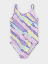 Купальник слитный для девочки. Мягкая эластичная ткань разработана специально для купальных костюмов и идеально садится по фигуре.  Быстро сохнет и практически нет выгорания на солнце. Тонкие завязывающие бретели позволяют регулировать купальник по росту девочки. Разноцветный принт колорблок и яркие завязки из пайпинга - настроение лета, теплого ветерка и солнца.