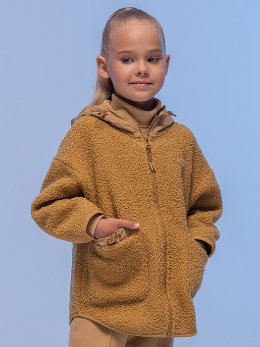 Флисовая куртка детская для девочки. Изделие выполнено в сочетании двух материалов: бербер-флиса с мягкой фактурой «барашка» и гладкой курточной ткани. Это супермодный тренд. Капюшон и отделка вдоль застёжки из курточной ткани — максимум практичности. Ребёнок не промокнет, а ткань вдоль молнии не будет мараться при частом использовании. Толстовка детская актуального оверсайз-силуэта со спущенным плечом подарит ребёнку комфорт и свободу движения. Высокий воротник защищает шею от холода и ветра. По переду застёжка на центральную молнию с крупным пуллером — ребёнку просто застёгивать и расстёгивать. Тканевый стоппер защищает подбородок от зажима молнией. По низу изделия и рукавов окантовка эластичной тесьмой, благодаря чему они не растягиваются и сохраняют форму и прекрасный внешний вид надолго. Куртка с двойными накладными карманами: верхняя часть из основной ткани, внутренняя — из курточной — оригинально и стильно. Объём капюшона и объём внутренних карманов регулируется с помощью эластичной тесьмы со стопперами. Капюшон с двумя швами, что обеспечивает анатомически правильную форму и комфортную посадку по голове. Оверсайз-куртка однотонная, без принта. Неприхотлива в уходе. Оба материала состоят из полиэстера  — толстовка тёплая, лёгкая, мягкая, просто стирается и быстро сохнет, не выгорает и не скатывается, сохраняет отличную форму надолго. Худи выполнено в универсальном бежевом цвете. В линейке представлены следующие размеры: 1 (86); 2 (92); 3 (98); 4 (104); 5 (110); 6 (116); 7 (122); 8 (128); 9 (134); 10 (140); 11 (146). Мягкая куртка подходит для девочек дошкольного и младшего школьного возраста, а также девочек-подростков. Идеальна для детского сада, прогулок, активного отдыха, спорта. Худи с капюшоном можно носить круглый год: прохладным летом, осенью и весной (демисезон), зимой. Оно может заменить ветровку в начале осени или конце весны, а зимой послужит тёплым средним слоем одежды. Чудесный подарок дочери, внучке или сестре на День рождения и любой другой праздник.