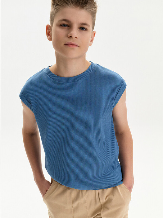 Майка летняя в рубчик для мальчика. Однотонная яркая футболка без рукавов свободного кроя станет отличным вариантом летней одежды для вашего малыша или подростка. Подойдет для занятий спортом, походов летом на пляж и просто прогулок.