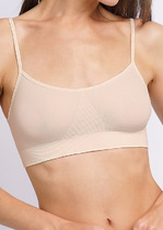 Женский бельевой топ. Изготовлен по бесшовной технологии с минимумом швов. Боковые плоские раздвижные швы, края горловины, проймы и низа изделия подогнуты и приклеены. Топ максимально невидим под одеждой, не натирает, комфортно сидит на теле. Съемные формованные чашки поддерживают грудь и создают красивый объем. Продуманное расположение регулируемых бретелей по спинке делают топ комфортным в носке, лямки не спадают с плеч. Этот топ станет идеальным функциональным нижнем бельем на каждый день.