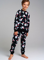 Уютная пижама для мальчика. Изделие выполнено из 100% хлопка — идеальный вариант для детской пижамы. Ткань из хлопка приятна на ощупь и превосходно пропускает воздух, позволяя коже ребёнка дышать. В пижаме из хлопка ребёнку будет комфортно, даже если он сбросит одеяло. Футболка и брюки умеренного объёма, рукава свободные — пижама очень удобна для сна. В поясе брюк мягкая и широкая резинка — не перекручивается и не давит. Манжеты брюк и отделка горловины джемпера из эластичной рибаны — комплект удобно надевать и снимать. А также резинка отлично сохраняет форму в течение долгого времени. По переду забавный принт — порадует любого мальчишку! Принт мягкий и эластичный, отлично переносит многочисленные стирки. Комплект подходит для сна как дома, так и в детском саду — прекрасный выбор для вашего ребёнка!