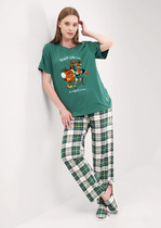 Пижама женская с шортами. В составе ткани преобладает высококачественный хлопок — комплект для сна мягкий, гипоаллергенный и хорошо пропускает воздух. В хлопковой пижаме вам будет комфортно и уютно во время сна. Эластан помогает изделию надолго сохранить первоначальную форму. Майка свободного кроя на широких бретелях дарит комфорт и свободу движений. Шорты свободного кроя, средней длины – для удобства и комфорта. Шортики женские на широкой эластичной резинке – она не давит и не перекручивается. Хлопковая пижама украшена милым, «няшным» принтом в виде забавного зайчика в очках, надписи переводятся: «хорошая атмосфера», «сделай сегодняшний день счастливым» — почувствуйте себя беззаботной девчонкой. Пижамный костюм неприхотлив в уходе. Принт эластичный и мягкий, легко переносит частые стирки. Милая пижама подходит как для сна, так и просто для отдыха дома. Помните о правильном уходе за изделием: рекомендуется стирать при температуре не выше 30 °C, без предварительного замачивания, с изнанки. Это поможет сохранить качество и цвет пижамы на длительное время.