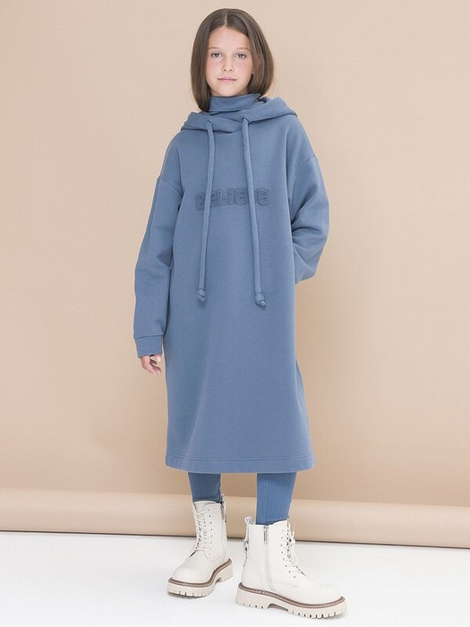 Платье из футера с начесом для девочки. Ткань мягкая, с большим содержанием хлопка, приятная на ощупь и простая в уходе. Мягкое спущенное плечо и прямой силуэт – настоящий трендовый оверсайз, в котором тепло, уютно, свободно. Регулировка объема капюшона длинным шнуром из основной ткани с декоративными узелками на кончиках. Технологичный 3D принт спереди – тактильно приятная изюминка модели с позитивным посылом. Манжеты рукава из основной ткани.