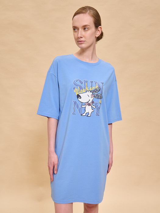 Платье футболка женское оверсайз. Трикотажное платье оверсайз прямого кроя с коротким широким рукавом. Плечо спущено — модель максимально комфортная. Комфортное платье-футболка с принтом – базовый элемент женского гардероба. Повседневное платье свободного кроя подойдет для любой фигуры. В составе ткани изделия преобладает высококачественный хлопок – платье мягкое и отлично пропускает воздух, позволяя коже дышать. Эластан помогает модели надолго сохранить первоначальную форму. Модель украшена милым, «няшным» принтом в виде счастливой собачки, надпись переводится: «солнечный выходной». Пижамный костюм неприхотлив в уходе. Принт эластичный и мягкий, великолепно переносит многочисленные стирки. Просторное платье в спортивном стиле подходит как женщинам, так и девушкам, девочкам-подросткам. Свободное платье оверсайз идеально для носки дома, комфортного сна, пижамной вечеринки, отдыха. Платье майка подходит для повседневного летнего гардероба, прогулок, отдыха, пляжа. А также модель удобна для беременных. Помните о правильном уходе за изделием: рекомендуется стирать при температуре не выше 30 °C, без предварительного замачивания, с изнанки. Это поможет сохранить качество и цвет платья на длительное время.