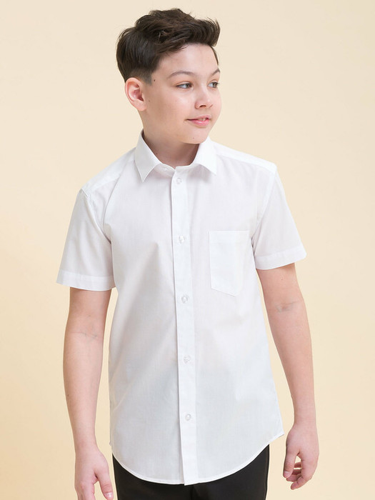 Школьная рубашка увеличенного объема для мальчиков. Преобладающий в составе ткани хлопок делает эту модель мягкой, дышащей и комфортной для ребёнка. Полиэстер помогает изделию сохранять форму и превосходный внешний вид. Рубашка с воротником типа windsor и нагрудным карманом традиционной формы — классика, не выходящая из моды. Подойдет для любого типа фигуры, не будет стеснять движения. Отличный вариант для школьной формы и любого торжественного случая. Идеально белый цвет без желтого и серого оттенка.