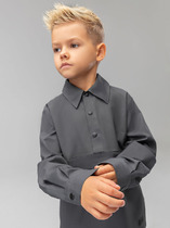 Школьная рубашка для мальчика из практичной ткани с современными деталями. Самые уязвимые для грязи детали выполнены из ткани контрастного цвета. Это разбавляет официальный стиль и позволяет не стирать белую рубашку каждый день.