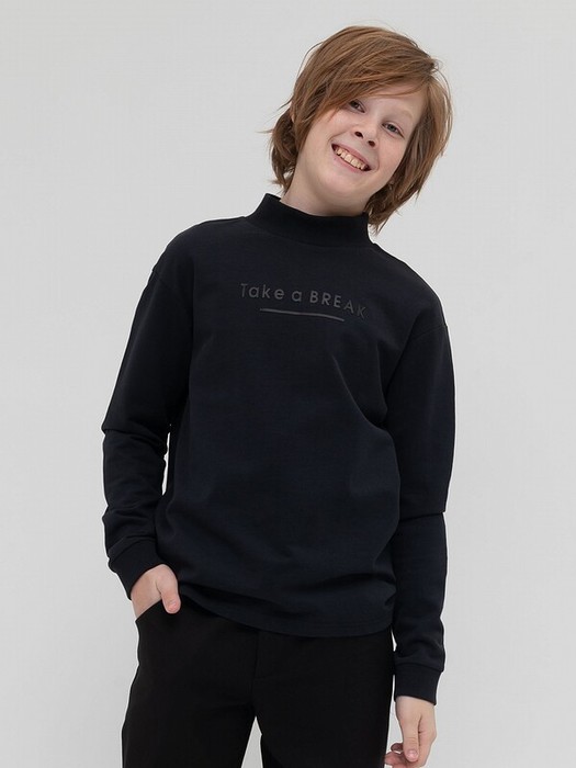 Свободный силуэт, спущенное плечо. Воротник стойка хорошо держит форму. Выпуклый резиновый принт Тake a break на груди переводится как Возьми паузу. Легко комбинируется с брюками, джинсами и шортами.