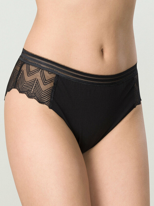 Женские трусы-слипы с высокой посадкой для влюбленных в красивый и активный образ жизни. Ткань с высоким содержанием хлопка и небольшим содержанием эластана. По линии талии мягкий принтованный эластик - не передавливает тело, не натирает кожу. Обработка по ноге эластиком для сохранения формы. Нежное геометричное кружево отражает тренд на умный дизайн.