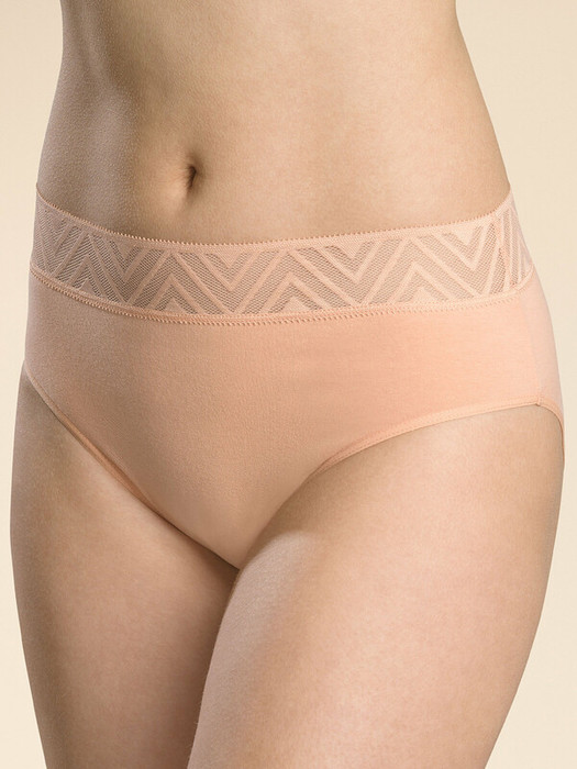 Женские трусы-слипы с высокой посадкой. Приятная на ощупь ткань с высоким содержанием хлопка и небольшим содержанием эластана – трусы сохраняют форму и не выцветают даже после частых стирок.  Мягкая широкая обработка по линии талии кружевным эластиком – не вызывает дискомфорта и не передавливает тело. Нежное геометричное кружево актуально в этом сезоне. Модель подчеркивает изящество фигуры и создаёт комфорт. Идеально подходят для повседневной носки, для сна и для романтических встреч.