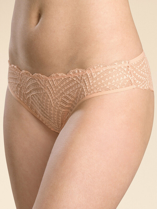Женские кружевные трусы-танга с низкой посадкой для влюбленных в красивый образ жизни. Эластичная и мягкая ткань позволяет избежать натираний и неудобств, кожа дышит. Кружево с фестонным краем подчеркивает изящные линии тела и придает модели романтичные нотки.  Нежный кружевной узор придает женственности и изысканности. Вы можете создавать разные образы по настроению - от повседневных и классических, до соблазнительных.