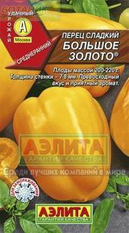 Раннеспелый (95 дней от полных всходов до технической спелости) сорт. Плоды золотисто-желтые, отличных вкусовых качеств, с приятным перечным ароматом, богаты витамином С. Сорт незаменим для домашних салатов, консервирования и замораживания. Рекомендуется для выращивания в открытом грунте и в пленочных укрытиях. Для перца пригодны суглинистые, воздухопроницаемые почвы. Хорошие предшественники - огурец, капуста, зернобобовые. Перед посевом семена обрабатывают в растворе марганцовокислого калия, затем промывают чистой водой