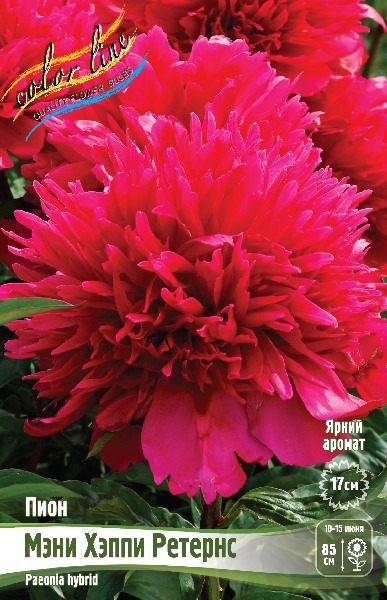 МАХРОВЫЙ, красный цветок диаметром 17см, куст высотой 85см, ранний срок цветения, цветение обильное