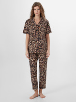 Пижама молодежная из трикотажного полотна «микрофлис» в комбинации двух видов: с набивным рисунком и гладкокрашеного в единой цветовой гамме, состоящая из футболки и брюк. Футболка - из гладкокрашенного полотна, классического покроя, с длинными втачными рукавами, горловиной овальной формы, окантованной основным материалом.Брюки – из полотна с набивным рисунком, свободного покроя, с эластичной тесьмой по талии и притачными манжетами по нижним срезам.