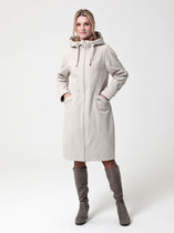 Стильный плащ от бренда D'imma fashion studio коллекции весна/лето 2016, выполненный из гладкого нейлона с мелким рисунком, на шелковистой подкладке. Плащ прямого кроя, с отложным воротником и асимметричным подолом. Спереди плащ застегивается на пуговицы.
