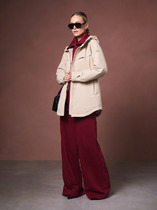 Двубортный плащ с поясом способен подчеркнуть красоту женской фигуры. Традиционный классический образ дополнен декоративными элементами, делающими модель более эффектной. К таким деталям можно отнести пагоны, создающие иллюзию более широкого плеча, ремешок на горловине, меняющий форму воротничка, а также затягивающие ремешки на рукавах, с помощью которых можно укоротить их длину. Модель прекрасно смотрится без пояса, идеально скрывая все особенности фигуры.