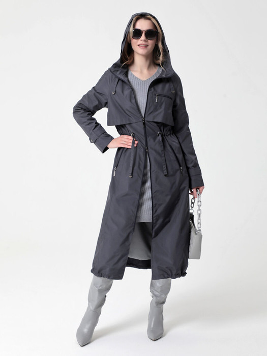 Длинный весенний плащ А-образного силуэта с рукавами покроя реглан и отлетными кокетками по спинке и полочке подойдет для женщин и девушек любого возраста. Застежка на двухзамковую молнию позволяет расстегнуть изделие как сверху, так и снизу, регулируя тем самым ширину шага при ходьбе и подъеме. Воротник - стойка, переходящая в регулируемый капюшон. Внешние карманы застегиваются на молнию. Есть внутренний кармашек, тоже на молнии. Прилегание по талии обеспечивается с помощью эластичной ленты и кулиски. Ширину по низу изделия можно регулировать затяжкой, тем самым меняя силуэт. Плащевая ткань имеет водоотталкивающую пропитку, которая выдержит небольшой дождь и легкий ветер. Плащ выполнен в модных цветах, выбирайте понравившийся, фантазируйте с обувью и аксессуарами, и Ваша весна будет не только комфортной, но и стильной!