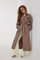 Тренч укороченный из экокожи: