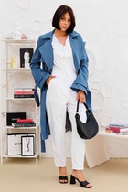 Данная модель прекрасно сочетается практически с любой одеждой и обувью, подходит для весны и ранней осени, а также для прохладных летних вечеров. Длина изделия по спинке 81 см. Длина рукава от плечевого шва с подворотом 60 см. В комплекте съемный пояс.