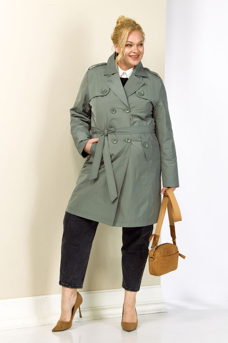 Современный, модный и стильный плащ на весенний период. Изготовлен из плащевой мягкой ткани, без утеплителя, на подкладке. Застежка двубортная. Горловина оформлена широким воротником пиджачного типа. Рукав втачной, длинный, что делает его практичным выбором для переменчивой погоды. Длина регулируется с помощью отворота. Передняя часть с отлетной кокеткой и двумя фунуциональными карманами на внутренних магнитах. Изделие прямого, классического кроя в комплекте со съемным поясом, который придает приталенный силует и элегантность. Спинка с отрезной кокеткой.
