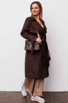 Плащ женский прямого силуэта без застежки, длинной чуть ниже колена. Линия плеча спущена. Воротник отложной с лацканами. На правой детали  переда  накладной карман.  Нижние детали переда на молнии, съемные. Рукав втачной, по низу цельнокроенная манжета. В боковых швах разрезы.  Изделие без подкладки.