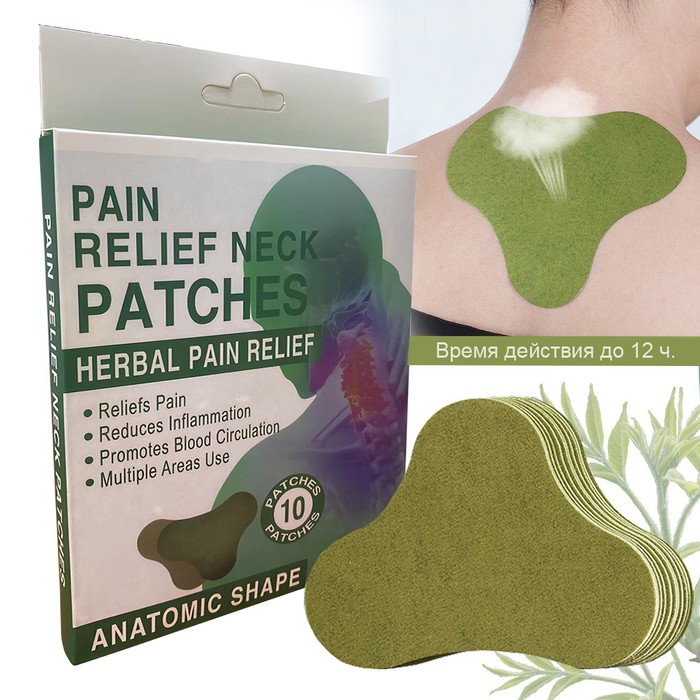 В коробке 10 пастырей - идеально подходят для области шеи. Специальная форма пластыря предназначена для комфортного облегания анатомических форм. Пластыри на тканевой основе, которые отлично фиксируются на коже. Использование пластыря удобно и комфортно, не ограничивает движений, не меняет привычный образ жизни. Обезболивающий, противовоспалительный, согревающий, лечебный, самонагревающийся пластырь - идеальное решение для облегчения дискомфорта и боли в шейном отделе позвоночника. С его помощью вы сможете снять боль в спине и шее, уменьшить воспаление, расслабить мышцы, а также улучшить местный метаболизм.Эффективен при болях вызванных неправильным положения корпуса и головы время рабочего дня. Офисным работникам или бьюти мастерам пластырь поможет быстро вернуться к нормальной жизни. Независимо от того, нужна ли вам помощь после интенсивной физической нагрузки или долгого сидения за компьютером, пластырь обеспечит вам снятие напряжения. Приятный запах душистых трав послужит дополнительной аромотерапией.Травяной пластырь не оставляет следов на коже. Не выделяет резких, неприятных запахов., Способ применения: Снимите защитную пленку, наложите пластырь липкой стороной на область, где необходимо снять боль. Следующий пластырь рекомендуется наклеивать после 6-8 часового перерыва. Проводить курс в течение 3-9 дней. 1 пластырь следует использовать однократно., Меры предосторожности: Только для наружного применения. Не использовать при наличии аллергии на компоненты в составе. Не наклеивать на открытые гнойные раны и поврежденную кожу. Не рекомендуется использовать беременным и кормящим женщинам., Не является лекарственным средством и не заменяет действие лекарств, использовать только в качестве вспомогательного средства для основного лечения. Если симптомы не улучшились или обострились, вам следует обратиться к врачу.