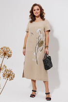 Платье полуприлегающего верху силуэта книзу годе, с застёжкой по среднему шву спинки на потайную молнию. Перед и спинка с рельефными швами. Рукава втачные, одношовные, короткие книзу расширенные, по окату со сборкой.