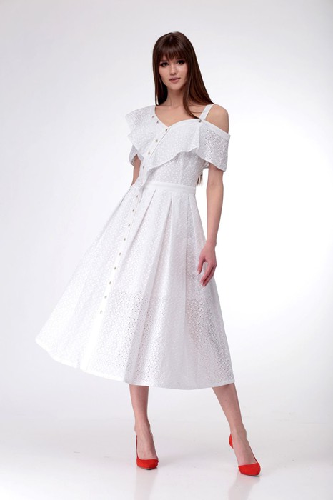 Очень красивое натуральное платье из ришелье с асимметрией по плечам.
