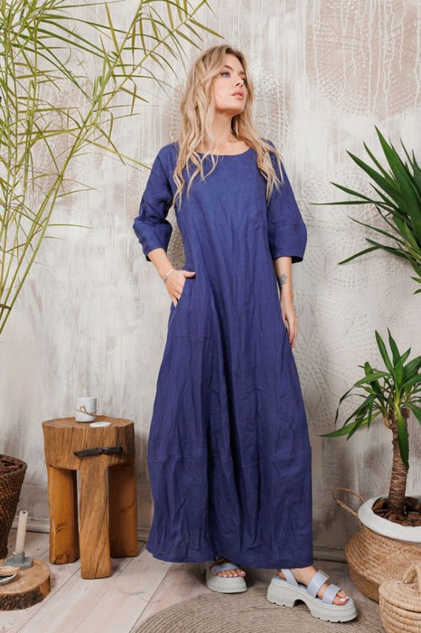 Волшебное длинное льняное платье "АМУЛЕТ" с очень интересной формой юбки и рукавов ввиде тюльпанчиков. Плюс удобные стильные большие карманы. Наши платья дают невероятное чувство комфорта, защищенности и красоты. Все изделия коллекции "АМУЛЕТ" имеют натуральную ткань, сложную обработку всех внутренних швов и энергосберегающий крой. В подарок идет шопер с логотипом бренда.