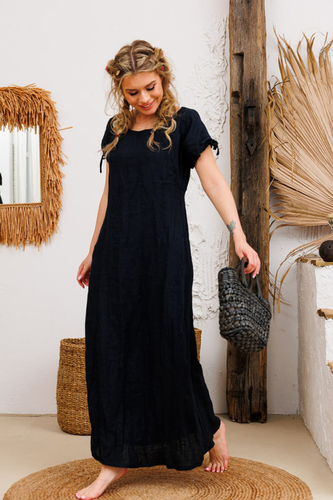 Стройное, благородное  платье с  карманами в боковых швах, что очень функционально. По спинке есть какеточка от которой исходит красивая встречная складка. Рукавчики небольшие, по низу  регулируемая кулиска с завязочками. Платья бренда АМУЛЕТ создаются по  славянским законам энергообережной одежды. Имеют перекидной крой и  нет швов по главным энергоцентрам человека и они все пошиты закрытым способом по изнанке платья. используется только натуральная ткань и фурнитура. В подарок   платье упаковывается в шопер с символом бренда.