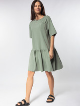 Платье женское трапециевидного силуэта из трикотажного полотна "масло"- идеальный вариант для повседневного образа. Будет отлично смотреться с босоножками, кроссовками или балетками. Отрезное по линии талии, с 3-мя воланами. Рукав короткий, расширенный к низу. Легкую непринужденность модели придают необработанные низ платья и рукава. Благодаря своему крою сядет на любую фиуру и скроет все недостатки. Длина (50-54)-125см.,(56-60)-130см. Длина рукава: (50-54)-19см.,(56-60)-21см.