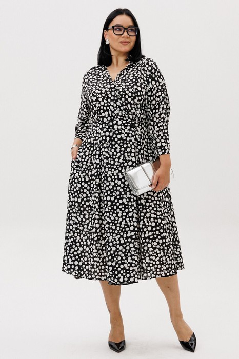 Элегантное женское палтье необычного кроя станет изюминкой вашего гардероба. Платье полуприлегающего силуэта, отрезное по линии талии со спущенным плечом. Рукав 3/4 длиный на отрезной манжете. По полочке идут защипы-складки в верхней и нижней частях, запах - на петли и пуговицы по подрезу. По нижней части платья запах идет в виде складки. По спинке кокетка со складкой, по подрезу вставлена резинка. Юбка-полусолнце с односторонними складками по полочке, по бокам карманы. По горловине воротник на отрезной стойке. Платье будет идеально смотреться с туфлями, ботинкаи и сапогами. Длина по спинке: 117см. Длина рукава с манжето 29см.