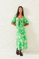 Платье силуэта транеция в стиле "бохо", воротник со стойкой, лиф застёгивается на петли пуговицы. Платье с притачными двумя воланами, с боковыми карманами. Рукава со сборкой по низу, с притачной манжетой застёгивающейся на петлю и пуговицу.