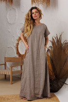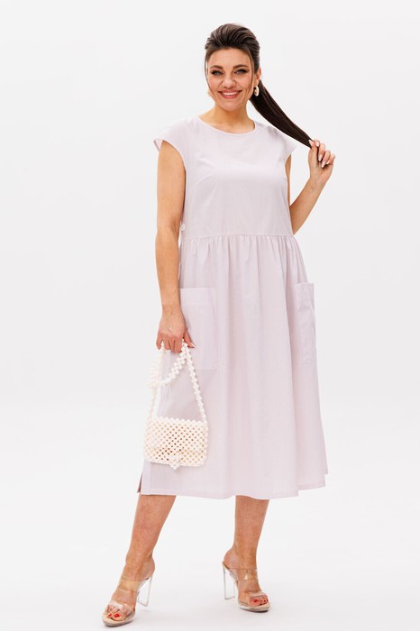 Это легкое летнее платье из натурального хлопка создано для тех, кто ценит комфорт и непринужденную элегантность. Свободный силуэт оверсайз мягко облегает фигуру, а спущенная линия плеча добавляет образу уютной расслабленности.