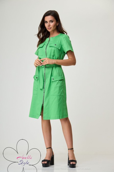 Платье прямого силуэта, чуть расширенное к низу, длина до колен, по переду на молнии. Притачной пояс на резинке по спинке, для лучшего прилегания. Функциональные нагрудные и набедренные карманы по переду. Втачной короткий рукав. Подчеркнуть талию можно при помощи съемного пояса. Платье идеальный вариант для сезона весна-лето, в нем вы будете чувствовать себя комфортно и стильно. С уверенностью можно сказать, что эта модель будет актуальна не один сезон.