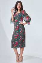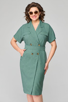 Спинка с притачной кокеткой и талиевыми вытачками, низ платья - юбка трапеция.
