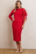 Платье О-силуэта , длиной до колена,  отрезное по линии талии, имеет небольшое заужение к низу.