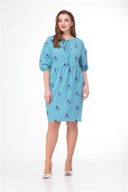 По переду выполнены нагрудные вытачки, нижняя часть платья присборена по талии, на спинке в среднем шве обработана застёжка-молния. Линия плеча спущена, рукава актуального объема, укорочены, со сборкой по окату, низ  собран на резинку. Горловина платья округлой формы, с завязками. Платье выполнено в нескольких принтах.