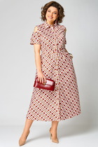 Платье полуприлегающего силуэта, расклешенное книзу. Воротник отложной, на притачной стойке. Платье отрезное по линии талии, на широкой резинке. Платье с центральной застежкой на петли и пуговицы на притачных планках. Полочка с нагрудными вытачками. В боковых швах юбки функциональные карманы. Рукав втачной короткий, с открытым плечом и декоративной патой на пуговице, понизу - притачная манжета.