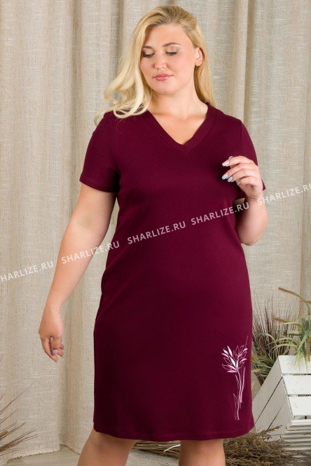 Платье полуприлегающего силуэта из хлопкового полотна в красивом оттенке Бургундии.Горловина V-образной формы, рукав короткий.Низ, по подолу платья украшает красивая тематическая вышивка.