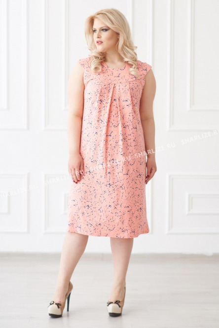 Женское платье из качественного вискозного полотна. Изделие с расширенным размерным рядом, свободного силуэта. В качестве декора выступают складки в зоне декольте.