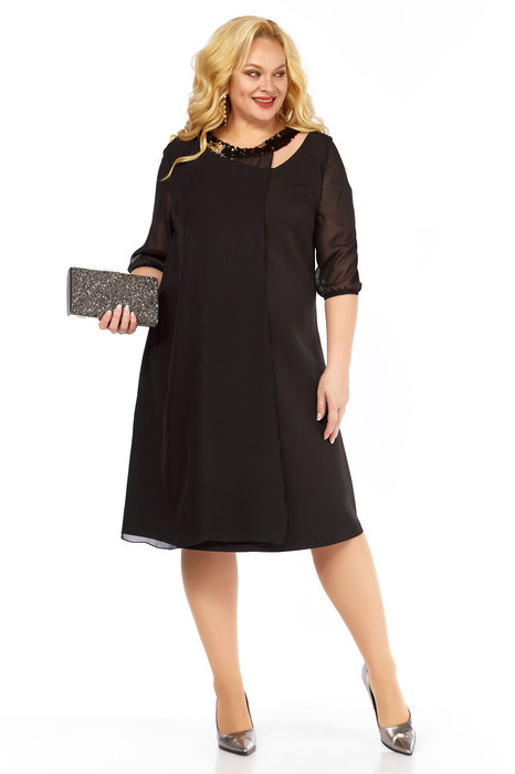 Платье женское А-образного силуэта. Застежка молния по спинке.Полочка сложного кроя с фигурной горловиной и отрезной декоративной ее частью . Рукав и верхняя часть полочки из шифона .