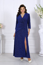 Платье полуприлегающего силуэта, отрезное по линии талии, юбка шестиклинка, расширенная к низу. На уровне бедер карманы с отложенным клапаном. На лифе по переду центральный шов, горловина V-образная. Рукава втачные одношовные с отложной манжетой. В комплект входит ремень. Платье без подкладки.