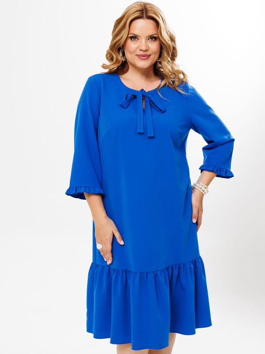 Нарядное платье силуэта трапеции, идеально подчеркнёт преимущество Вашей фигуры. Лаконичный крой ,платье с отрезным воланом. Акцент сделан на горловину, выполнена капля и завязывающийся бант. Рукав за локоть по низу выполнена сборка. Длина платья - 104 см, длина рукава - 48 см.