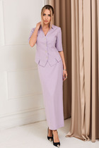Платье длинное с втачным коротким рукавом до локтя визу на притачной манжете. Полочка с центральной застежкой на петли-пуговицы по притачной планке и с карманами в боковых швах. Платье отрезное по линии талии, лиф с талиевой вытачкой, юбка со встречными складками от талии. Спинка с кокеткой и нашивкой на кокетке. Воротник рубашечный отложной на стойке. Платье без подкладки. Съемный пояс из основной ткани на полукольцах.