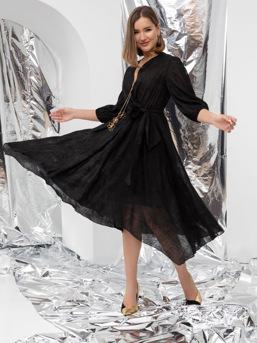 Летящий силуэт с асимметричным краем. Новое прочтение образов с последнего показа Versace. Пояс акцентирует талию, свободные рукава добавляют воздуха в образ. И не забываем про правильную линию декольте. Идеал!