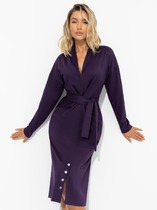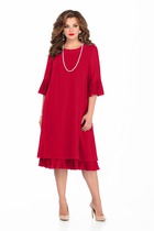 Платье женское полуприлегающего силуэта. Линия плеча спущена. По спинке средний шов. Перед из двух деталей, верхняя деталь отлетная, фиксируется съёмным поясом. V-образный вырез горловины. Обработка деталей переда, проймы, низа изделия - окантовкой.