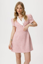 Края настрочных воланов, низа платья и низа рукавов обработаны спец машиной-улитка.